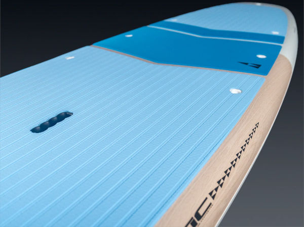 キールノーズからボード中央にかけてはフラット形状へとスムーズに移行し、抜群の安定性を確保。